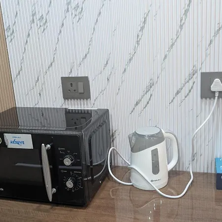 Ein Wasserkocher und ein Kühlschrank sind ebenfalls in der Küche dieser Unterkunft in Gurgaon vorhanden. Außerdem können Gäste einen Essbereich zur Selbstversorgung nutzen.